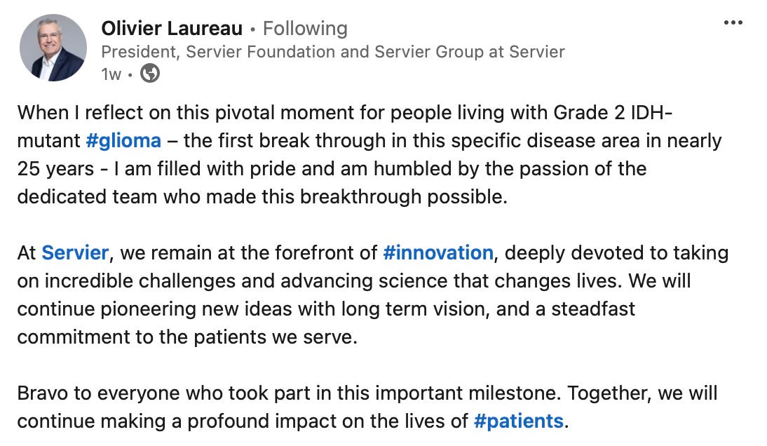 I feel genuinely optimistic about the promise of Voranigo and would echo the sentiments of others who believe it could represent a pivotal moment in how we treat brain tumours, even beyond the type it is currently indicated for.