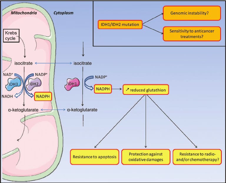 You may be asking how IDH1 and IDH2 differ, and this is important to briefly outline.